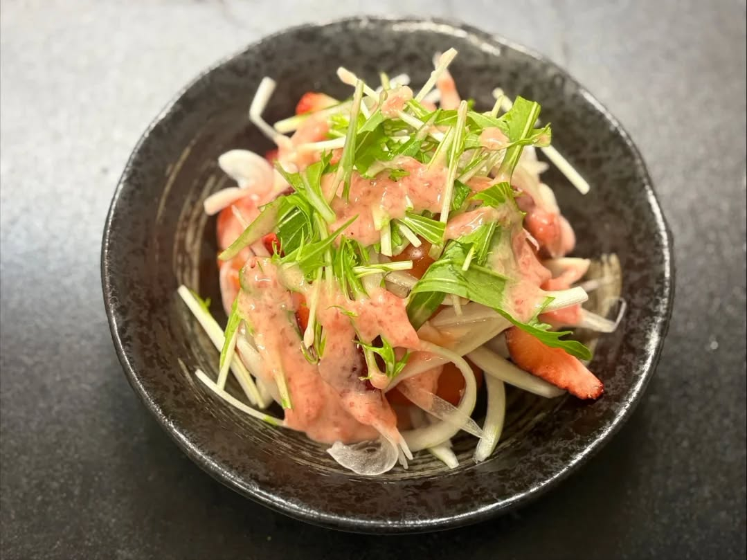 ★新玉ねぎとミニトマトのイチゴサラダ★ ★新玉ねぎとミニトマトのイチゴサラダ★ さっぱりしたトマトと甘酸っぱいイチゴを 組み合わせました! フルーティーな味です! スキル 投稿日 2026年3月25日 . .