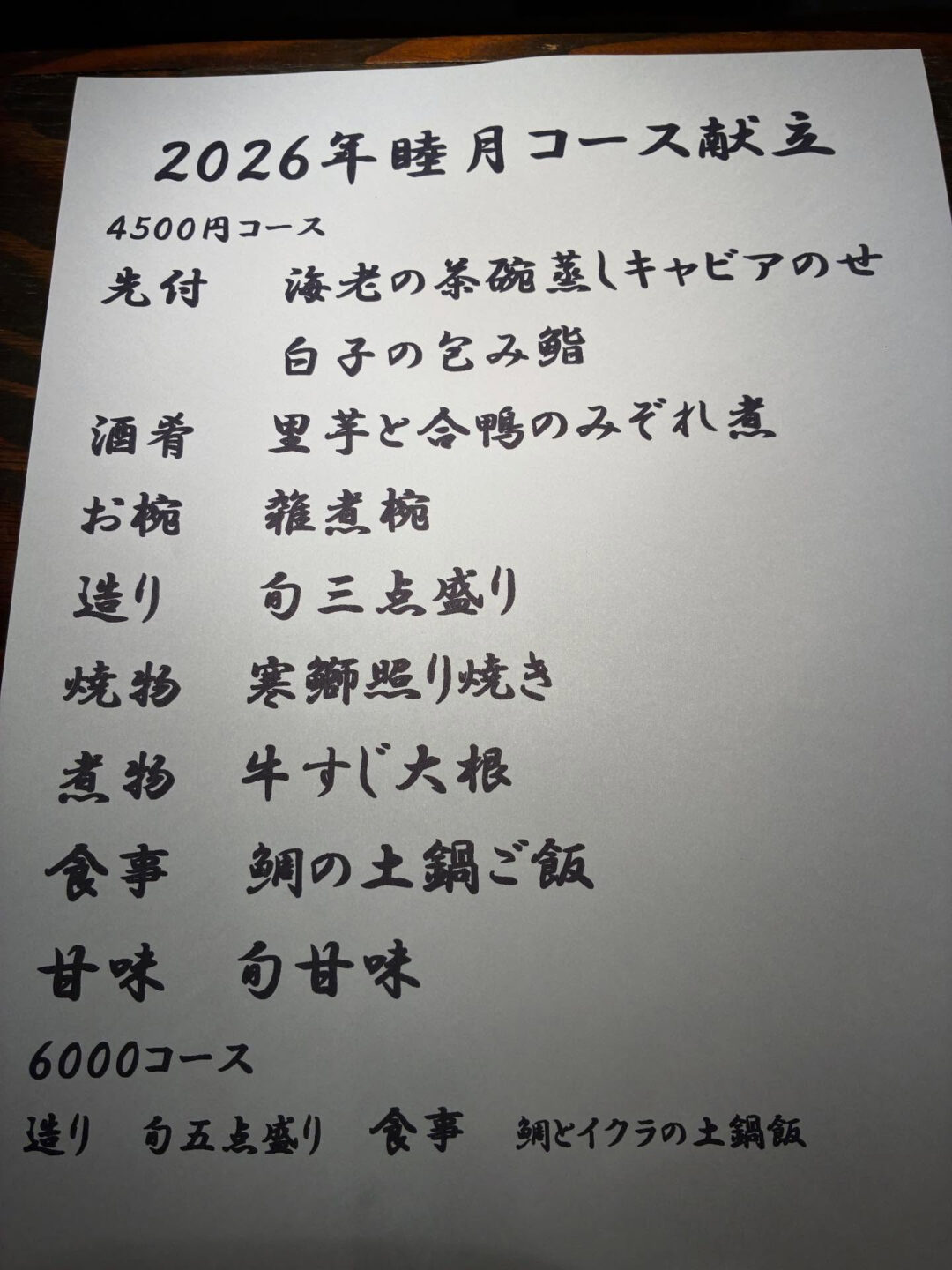 「1月睦月コースのご案内」