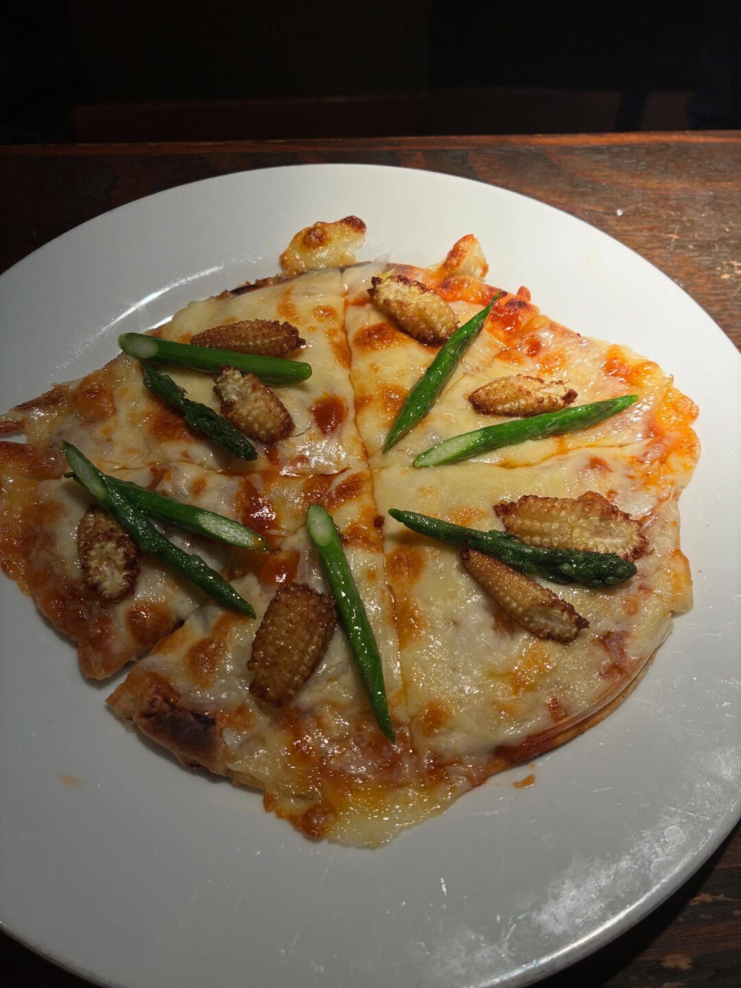 新メニュー「アスパラとヤングコーンのトマトピッツァ」
